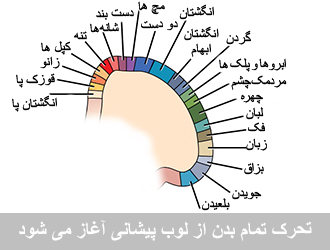 حرکت چشم ها از این لوب آغاز می شود و ماهیچه های دو چشم آن را انجام می دهند و حرکت سر از این لوب آغاز می شود و ماهیچه های صورت آن را انجام می دهند و حرکت تمام بدن از این لوب آغاز می شود.