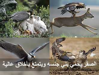 هذا الصقر الحيوان الأعجم هكذا أخلاقه، تناصره لبني جنسه، دفاعهم عنهم، تقبله للتعلم, متعته بالتعلم، لا يرضى بالذل، لا يرضى بالغدر، إذا احتاج أخذ، وإذا استغنى ترك، آية في الرقة في معاملته أنثاه، محب لفراخه، غيور على أبناءه، إذا كان الصقر هكذا, فما قولك ببني البشر, الذين يغدرون، والذين يرضون بالذل، والذين يأخذون ما لا يأكلون، يجمعون من الأموال مالا يحتاجونه؟ ما قولك ببني البشر، الذين يتكبرون على التعلم، أخذته العزة بالإثم، إنهم كانوا: