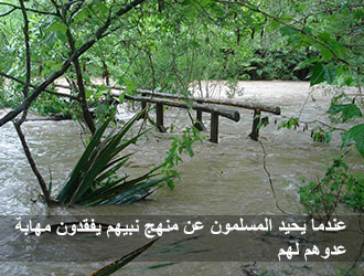(وَلَكِنَّكُمْ غُثَاءٌ كَغُثَاءِ السَّيْلِ، وَلَيَنْزَعَنَّ اللَّهُ مِنْ صُدُورِ عَدُوِّكُمُ الْمَهَابَةَ مِنْكُمْ) لا يوجد هيبة، طبعاً المسلمون حينما لا يُطبِّقون منهج نبيهم قال تعالى: