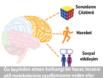 Çünkü düşünme, çıkarsamada bulunma, hüküm verme, idrak etme, plan yapma ve bunların hepsini harekete geçirme ön beyinde gerçekleşir.