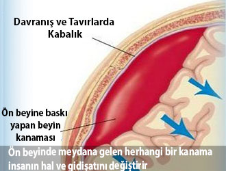 Eğer insan trafik kazasında bu bölgeden hasar alsa, ya da beyin kanaması geçirse yahut da iyi huylu bir tümör bulunup bu bölgeye baskıda bulunsa, dengesiz bir şekilde konuşur, ahlak ölçülerini yitirir ve toplum tarafından asla kabul edilemeyecek davranışlar sergiler. Bazı doktorlar bir kadının beyninin bu bölümünde bir kanama geçirdiğini, belli bir zaman kadının hal ve gidişatının değiştiğini, daha sonra vücut bu kanı emip, kan dağılıp gidince, eski tabiatına geri döndüğünü zikrederler.