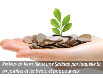(Prélève de leurs biens une Ṣadaqa par laquelle tu les purifies et les bénis, et prie pour eux. Ta prière est une quiétude pour eux.)