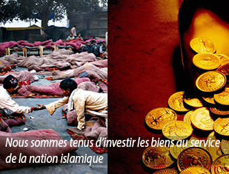 On soulève toujours le sujet des fonds qui sont l’essence de l'existence, une puissance non négligeable, plus exactement le culte de l’époque, on est à l'époque d'une troisième guerre mondiale déclarée, dont l’un des articles représente le vol de l’argent ; lors de la première guerre du Golfe Arabe, sept cents milliards de dollars ont été transférés de L'Orient à L'Occident, tous les jours il y va de ce virement de milliards de dollars, c'est une guerre de dépouillement, les richesses ont été pillées, les pays ont été conquis, les jeunes hommes ont été massacrés, le pétrole a été ravi, c'est l'époque du vol des musulmans ; quelle est l'action la plus sublime ? Ou quel acte nous rapproche d'Allah ? Eh bien, c'est le fait de gagner son dû liauthorment, de résoudre les problèmes des musulmans, peut-être n'êtes-vous pas conscients du rôle dangereux que peut jouer l'argent qui est considéré comme l’essence de la vie.