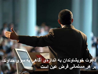 از این سخنان روشن میشود که دعوت به الله فرض عین است. فرض عین یعنی هر مسلمانی با توجه به میزان آگاهی، شناخت افراد و تجربهی فراوان. برایتان تاکید میکنم که کسی که کارش را خوب انجام دهد، در مهارت و تخصص خود ممتاز است. کسی که به سلامتی و