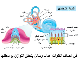لذلك الميت لا يقف، لأنه لا يوجد توازن، بالتوازن ثلاث قنوات متداخلة فيها سائل، فيها أهداب، عندما تميل السائل يبقى مستوياً، يرتفع بمكان دون مكان، بالمكان المرتفع يوجد أهداب يصلح الإنسان،
