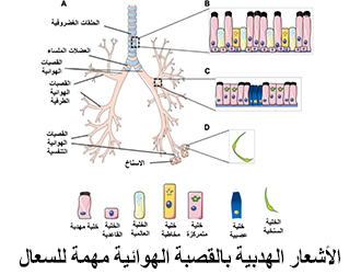 السعال؛ هناك أشعار هدبية بالقصبة الهوائية تتحرك نحو الأعلى باستمرار،