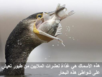 هذه الأسماك هي غذاءٌ لعشرات الملايين من طيور تعيش على شواطئ هذه البحار، اسمها غراب البحر .