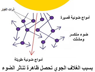 فأشعة الشمس تنعكس على ذرات الهواء، وعلى ذرات الغبار فيتألَّق الجو، ويصبح مضيئاً، فلما خرجت المركبة من غلاف الأرض الجوي إلى أعماق الفضاء فجأةً انتقل رواد الفضاء بمركبتهم إلى ظلامٍ دامس، والصور الملونة التي يلتقطها روَّاد الفضاء من مركباتهم تؤكِّد ذلك، لونٌ أسودٌ داكن،