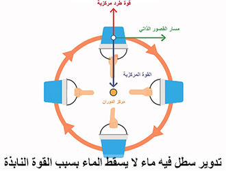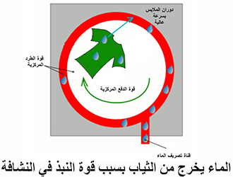 أكثر الآلات التي تتولى تجفيف الملابس على أي مبدأ تكون؟ دوران سريع، ماذا ينشأ من الدوران السريع؟ قوة نبذ، فالماء يخرج من الثياب عن طريق قوة النبذ.