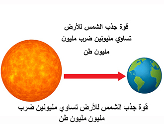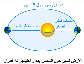 لنضرب على هذا مثل الأرض، الأرض تسير في مسار مغلق حول الشمس، هذا المسار ليس دائرياً، بل هو إهليلجيّ أيْ بيضوي، والشكل البيضوي له قطران، قطرٌ أعظمي، وقطر أصغري، فالأرض إذا وصلت إلى القطر الأصغر، هناك خطر أن تنجذب إلى الشمس، لأن المسافة قلَّت بينها وبين الشمس، صغُرت، حينما تقلّ المسافة بين الأرض والشمس تتغلب قوة جذب الأكبر، والشمس يزيد حجمها عن حجم الأرض بمليون وثلاثمئة ألف مرة، من السهل جداً أن تنجذب الأرض إلى الشمس، وتتبخر في ثانيةٍ واحدة، بثانية واحدة تصبح الأرض بخاراً، لأن أشعة الشمس ستة آلاف درجة على سطحها، وعشرون مليون درجة في نواتها، في مركزها، ماذا ينشأ؟ تزيد الأرض سرعتها، مِن هذه الزيادة ينشأ قوة نابذة زائدة تكافئ القوة الجاذبة فتبقى في مسارها، فلو وصلت إلى البعد الأعظمي، الشكل بيضوي، القطر الأطول، هنا تواجهنا مشكلة ثانية، لعل هذه السرعة العالية تجعلها تتفلَّت من مسارها حول الشمس، وإذا تفلَّتت غرقت في ظلامٍ دامس، وغرقت في بردٍ شديد يصل إلى درجة الصفر المطلقة، مئتان وسبعون تحت الصفر، وكان الموت، فلابدّ من أجل أن تبقى على مسارها أن تتباطأ سرعتها تباطؤاً تدريجياً كي تبقى مرتبطة بالشمس، فمن أعطى الأرض سرعةً إضافيةً كي تتفلَّت من انجذابها للشمس؟ ومن أعطى الأرض سرعةً متباطئةً كي تنجو من تفلُّتها من مسارها حول الشمس؟ الله جلّ جلاله.