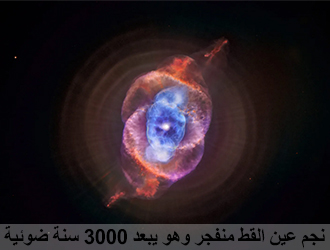 القفزة الواحدة، نجم القطب أربعة آلاف سنة، مرصد "هابل" في أمريكا رصد سديماً اسمه: عين القِط، وفي هذا السديم نجم تفجَّر، يبعد عنا هذا النجم ثلاثة آلاف سنة ضوئية، وقد رُصِدَ هذا النجم، وهذه صورته، قال تعالى:
