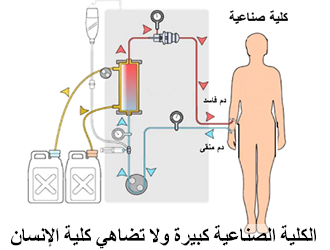 شتانَ بين الجهازين، لو وازنت بين كُلْيةٍ صناعيةٍ وبين كُلْيةٍ طبيعية شتانَ بين الصنعتين، الكليةُ الصناعية حجمها كبير، ويحتاج الإنسان أن يتمدد إلى جنبها ثمانِيَ ساعات، وفي النهاية لا تستطيع أن تصفي مِن دم الإنسان إلا ثمانين بالمئة،