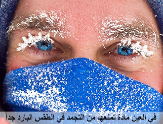 ما هذه الصنعة؟ هذه العين، لو سافرت إلى بلدٍ في القطب الشمالي، والحرارة هناك سبعون تحت الصفر، ترتدي الثياب الصوفية، والجوارب، وكلَّ شيء، لكن هل تستطيع أن تغطي عينيك؟ لا تستطيع، لابد أن تكون صفحة العين على مساسٍ مع الهواء الخارجي، وفي العين ماء، لمَ لا يتجمَّد الماء وهو على اتصالٍ بجوّ حرارته سبعون تحت الصفر؟! قال: لأن في العين مادةً تمنع التجمد، مضادةً للتجمد،