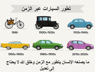 ﴿أَأَنْتُمْ أَشَدُّ خَلْقاً أَمِ السَّمَاءُ بَنَاهَا﴾ وازنْ بين صنعة الله عز وجل وهو خَلْق الإنسان، منذ أن خُلِق الإنسانَ مِن عهد آدم إلى يوم القيامة أطرأ عليه تعديل؟ هل وجد اليد قصيرة فزاد طولها؟ أطرأ عليه تعديل؟ انظر إلى مركبةٍ صنعت في عام ألف وتسعمئة، ووازن بينها وبين مركبةٍ صنعت عام ألفين، الفرق شاسع جداً، المركبةُ القديمة تُدير محرِّكها مِن خارجها، تذكرون ذلك؟ وتُطلق البوق بطريقةٍ بدائيةٍ جداً، على الهواء، وتُشعل مصابيحهُا بالكبريت، فيها شمعات، وعجلاتها ليس فيها هواء، كتلة صُلبة، ومحركها له حركة واحدة، هذه مركبةٌ صنعت عام ألف وتسعمئة، أما التي صنعت عام ألفين فيها شيء لا يصدَّق، ماذا تستنبط؟ إن خبرة الله قديمة لا تحتاج إلى تعديل، ولا إلى تغيير، ولا إلى تبديل، ولا إلى تطوير، بينما خبرة الإنسان حادثة، الصنعات كلها، كلّ سنة هناك تطوير،