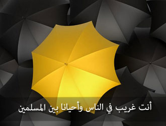 حينما يتبع المسلمون أهواءهم، حينما يألفوا حياة الغرب، حينما تسيطر عليهم أنماط المعيشة الغربية، حينما يضعف تمسكهم بأصول دينهم، عندئذ يكون المؤمن الصادق المستقيم الملتزم غريباً بين المسلمين، هو غريب بين الناس، وغريب بين المسلمين.
