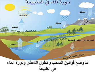 من فجَّر الينابيع؟ من أنزل الأمطار؟ من حرَّك السحُب؟ من قَنَّنَ هذه القوانين؟ بخار الماء، والتبخُّر، والهواء يحمل بخار الماء، وكل درجة حرارة يستوعب الهواء من بخار الماء ما يستوعب، فإذا انتقل بخار الماء إلى جبهةٍ باردة تخلى عن بعض ما فيه فكان المطر،