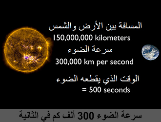 الضوء يقطع في الثانية ثلاثمئة ألف كيلو متر، إذا كل ثانية قطع الضوء ثلاثمئة ألف كيلو متر كم قطع الضوء في هذا الدرس؟