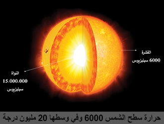 هذه الشمس من خمسة آلاف مليون سنة مُتَألِّقة، مشتعلة، ويُقدِّر علماء الفلك أنها تبقى متألِّقة إلى خمسة آلاف مليون سنة أخرى، وترسل من الطاقة ما لا يوصف، سطحها تزيد حرارته عن ستة آلاف درجة، حرارتها في مركزها عشرون مليون درجة،