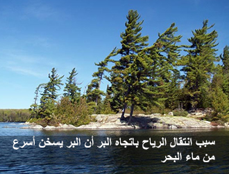 لذلك حينما تكون أشعة الشمس مسلطةً على المناطق الساحلية، يسخن البر بأسرع مما يسخن البحر، إذا سخن البر بسرعةٍ أسرع، يتمدد الهواء، يصعد نحو الأعلى، يتخلخل، يقلُّ الضغط هناك، فإذا كان هواء البحر أكثر كثافةً، وأكثر برودةً، وأكثر ضغطاً، فإنه ينتقل إلى البر، لذلك في أي مكانٍ من أماكن السواحل، ترى نسيم البحر ينتقل بعد الظهر من البحر إلى البر .