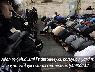 Şehid olan Allah Teâlâ ilmi ile tüm varlıkların; Başarıya ulaştırarak, koruyarak, destekleyerek ve yardım ederek müminlerin yanındadır. Allah Teâlâ şöyle buyurur: